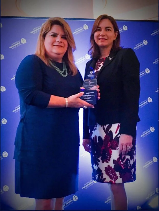 I presented the American Psychiatric Excellence (APEX) Award to the then Puerto Rico’s Resident Commissioner Jenniffer Gonzalez in recognition for her efforts to help secure disaster aid for Puerto Rico and several states affected by Hurricane Maria. Natural disasters such as this one have tremendous psychological impacts on the community, both immediately and for years to come.
